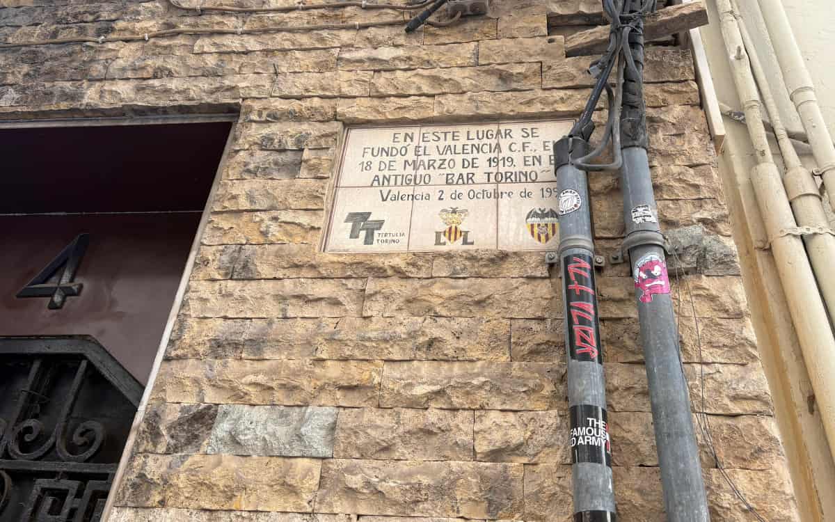 El rótulo se instaló en el número 4 de la calle Barcelonina en el año 1998 y, desde entonces, ha sido un punto de encuentro para los aficionados del club. Sin embargo, investigaciones posteriores señalan que el desaparecido Bar Torino se encontraba realmente en plena Plaza del Ayuntamiento, donde hoy también se ubica una placa conmemorativa que reza: «Km 0 del Valencianisme».