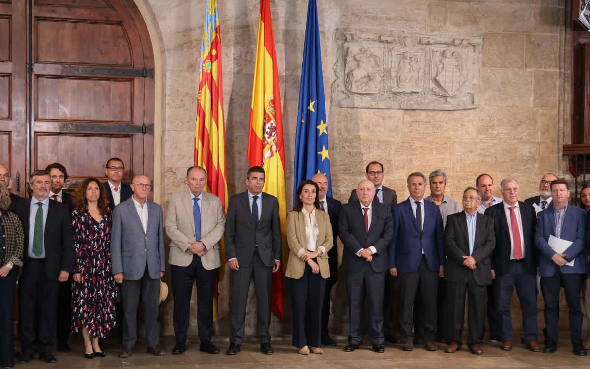 El president de la Generalitat, Carlos Mazón, con entidades empresariales proveedoras, en el Palau de la Generalitat. Imagen: GVA.