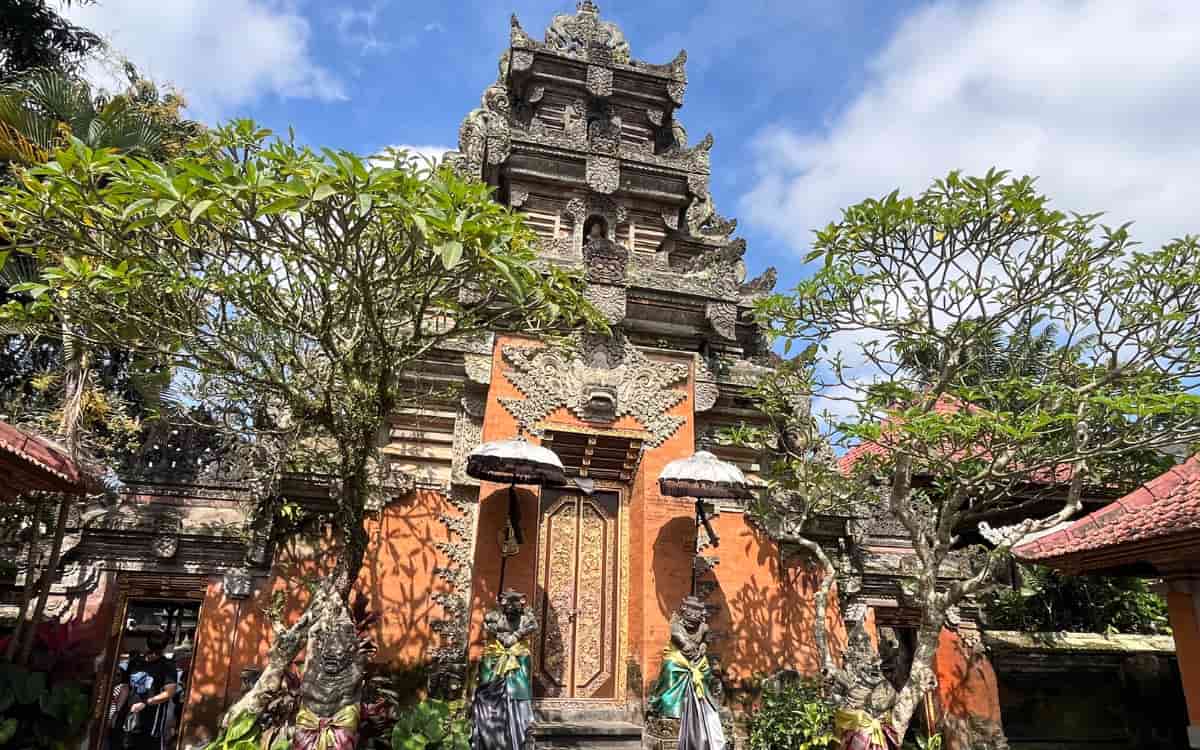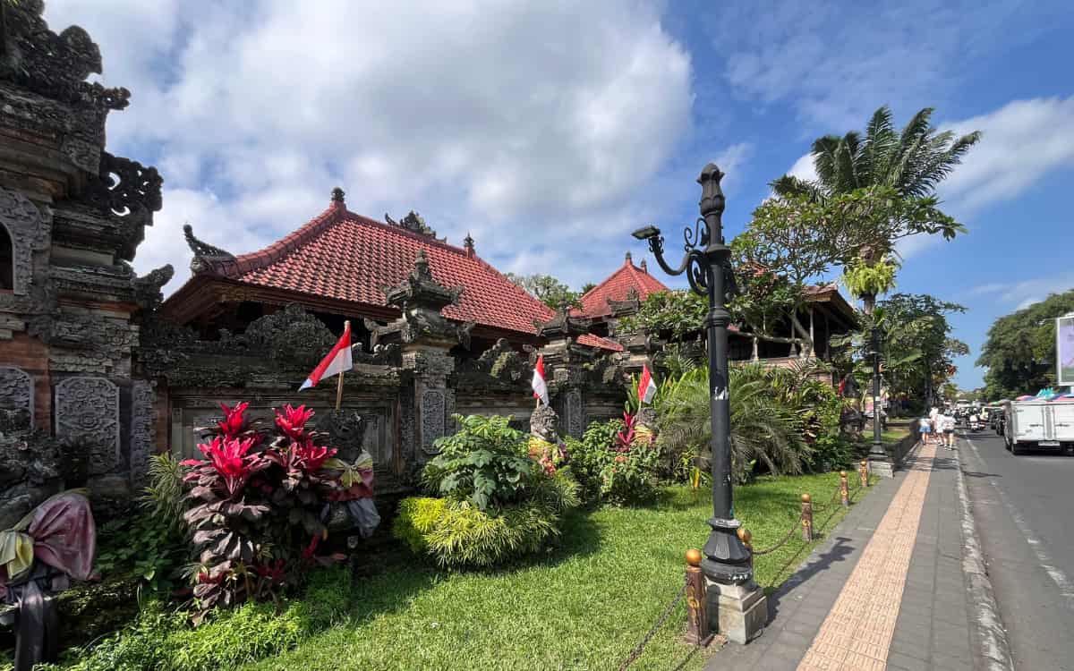 En Ubud, es recomendable visitar el Palace Ubud para conocer más de cerca la arquitectura local. Aunque la ciudad está llena de templos y construcciones con la típica piedra balinesa que verás en cada rincón, este palacio tiene un encanto especial. Además, está rodeado por el bullicio del mercado de artesanía, que en realidad es un mercado de souvenirs y todo tipo de artículos balineses, y calles repletas de tiendas muy animadas. Aquí sí hay aceras, lo que permite pasear con comodidad; en la mayoría de calles de Ubud no existen, por lo que dedicar tiempo a un paseo relajado puede resultar complicado.