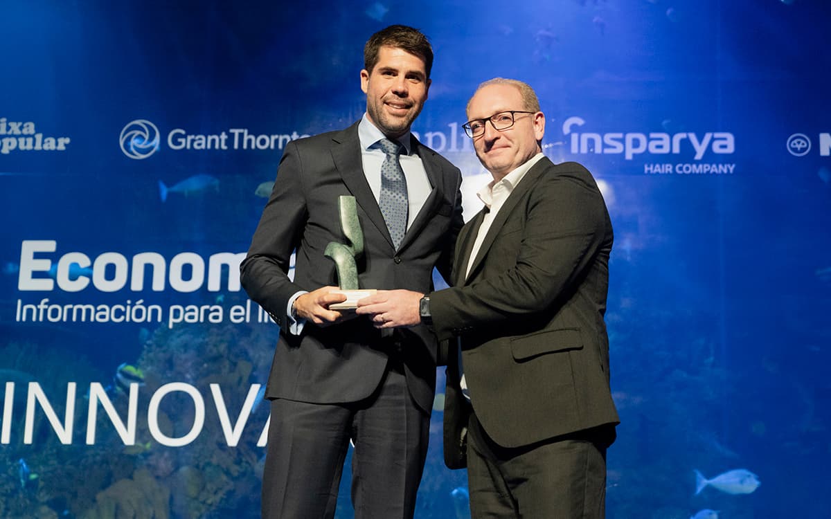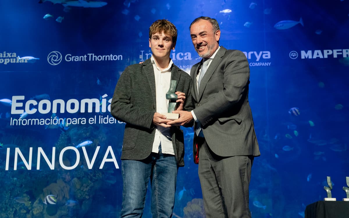 Álex Royo, nieto de Pascual Royo, recogió el reconocimiento en representación de la familia de manos del socio director de Implica Corporate Finance, Ramón Requeni.