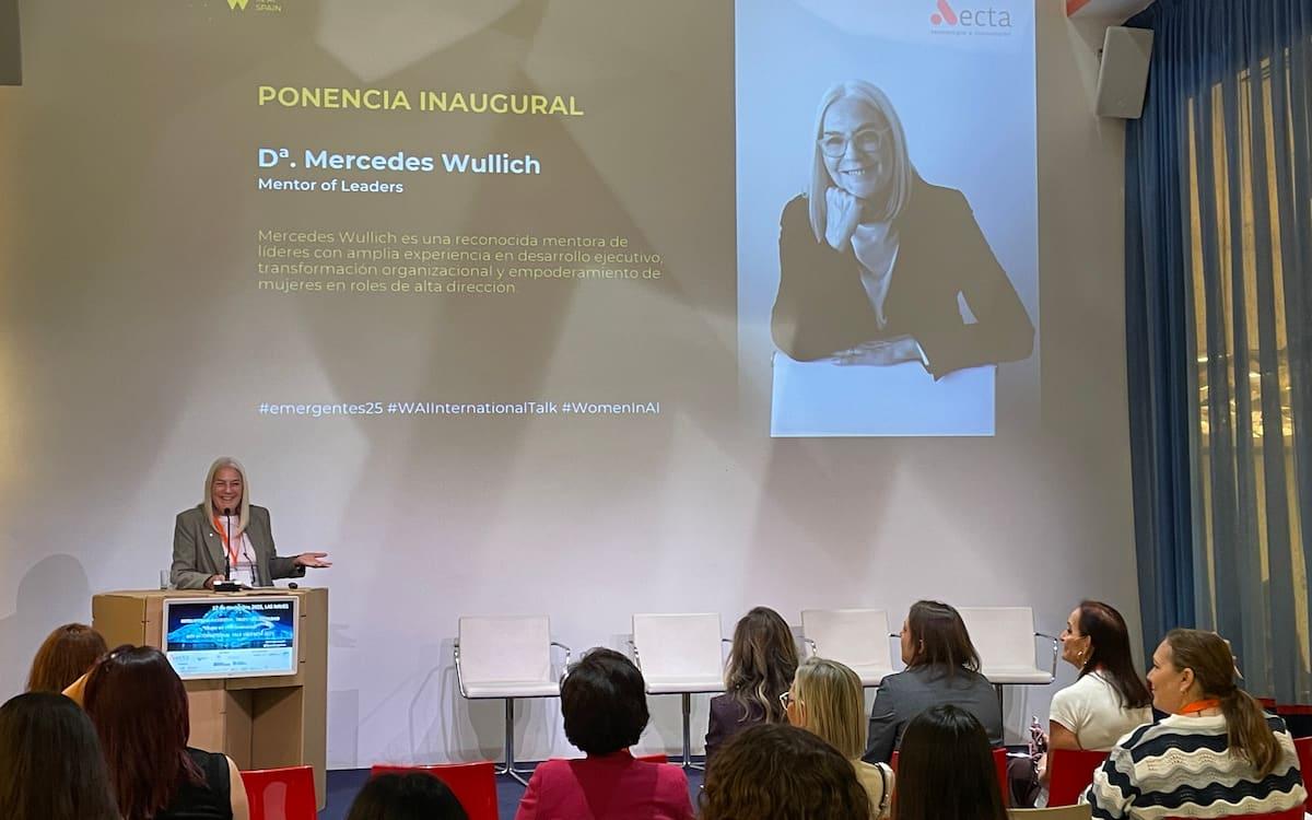Sobre la palestra, la mentora de líderes y periodista Mercedes Wullich defendió un liderazgo femenino que reconoce las propias fortalezas, abandona la impostura y toma decisiones alineadas con prioridades reales, sin dejarse arrastrar por inercias o expectativas ajenas. Su llamada a caminar, citando al periodista francés André Bretón, con el ojo en estado salvaje, apuntó a una competencia clave en la era de la IA: la capacidad de cuestionarlo todo, desde el dato hasta el modelo y desde el proceso hasta el impacto. Cuando las mujeres lideran equipos de inteligencia artificial, explicó, reprograman el algoritmo y redefinen su papel en la empresa y en la sociedad, integrando propósito, impacto social y visión colectiva en lugar de rendirse a un cortoplacismo que a menudo penaliza la confianza de los usuarios y la sostenibilidad de los proyectos.