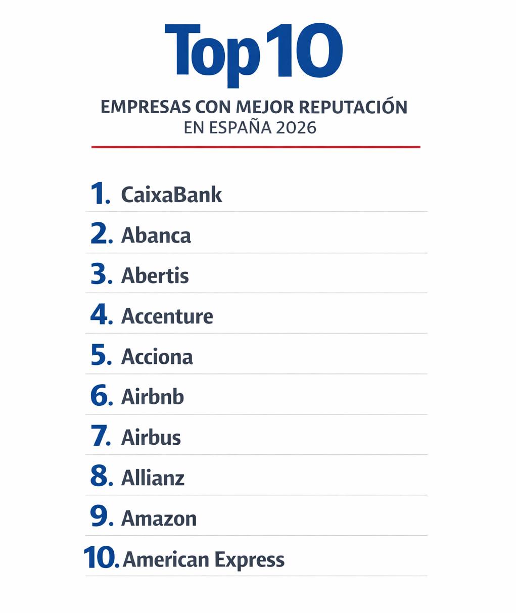 El primer puesto del ranking vuelve a situar a CaixaBank como la compañía con mejor reputación en España, consolidando una tendencia que se ha repetido en los últimos años: el liderazgo reputacional se ha desplazado hacia entidades con fuerte implantación nacional, discurso de estabilidad y capacidad de influencia social.
