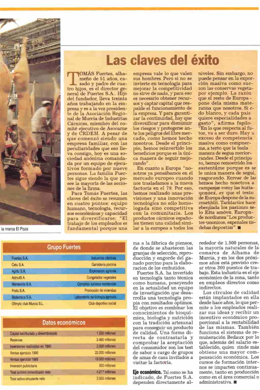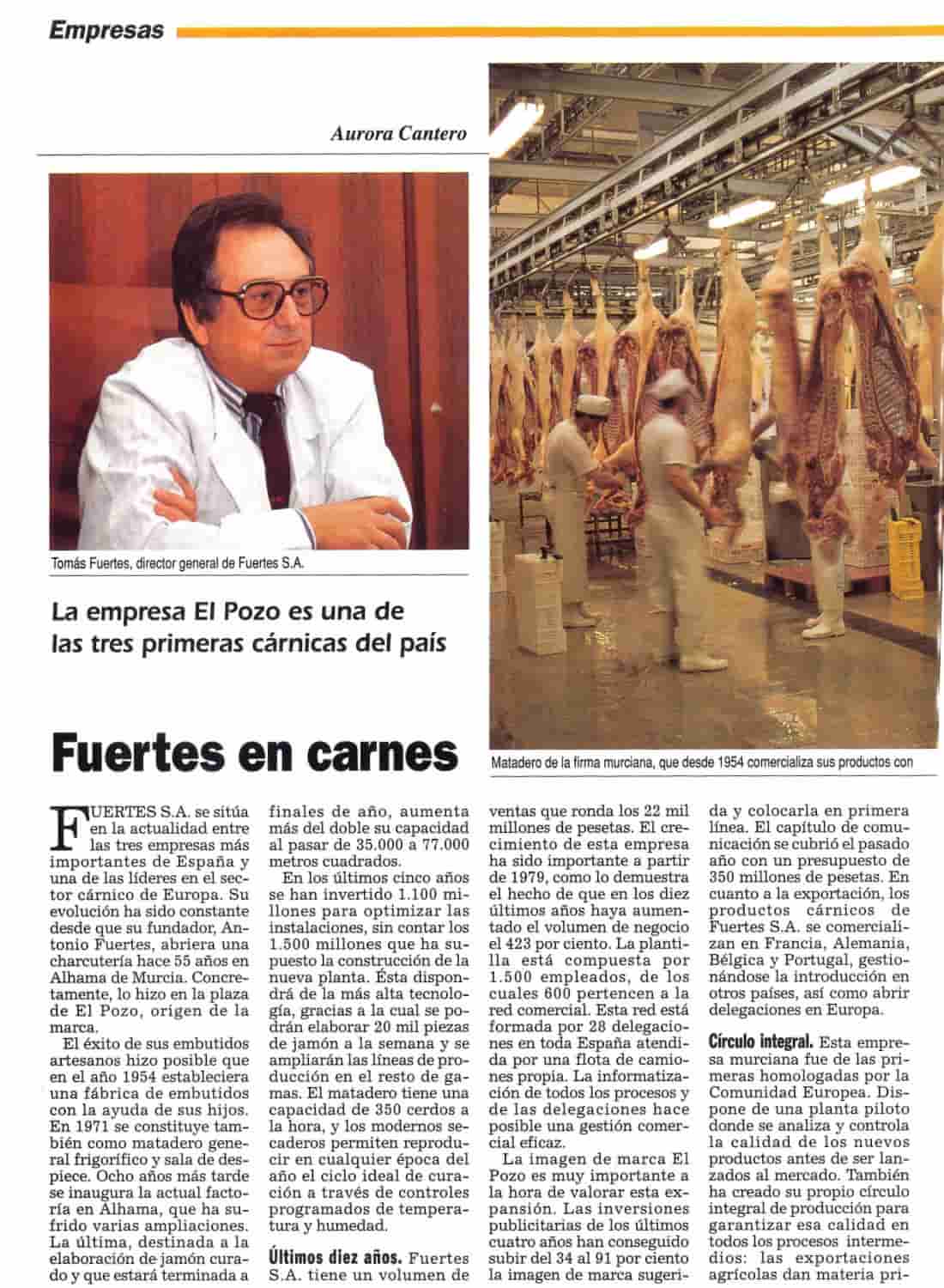 Diciembre de 1991. Economía 3 dedica un amplio reportaje a Fuertes S.A. bajo un título algo juguetón: Fuertes en carnes. En aquellas páginas, la empresa ya aparecía situada entre las tres grandes cárnicas del país y como una de las referencias emergentes del sector en Europa.