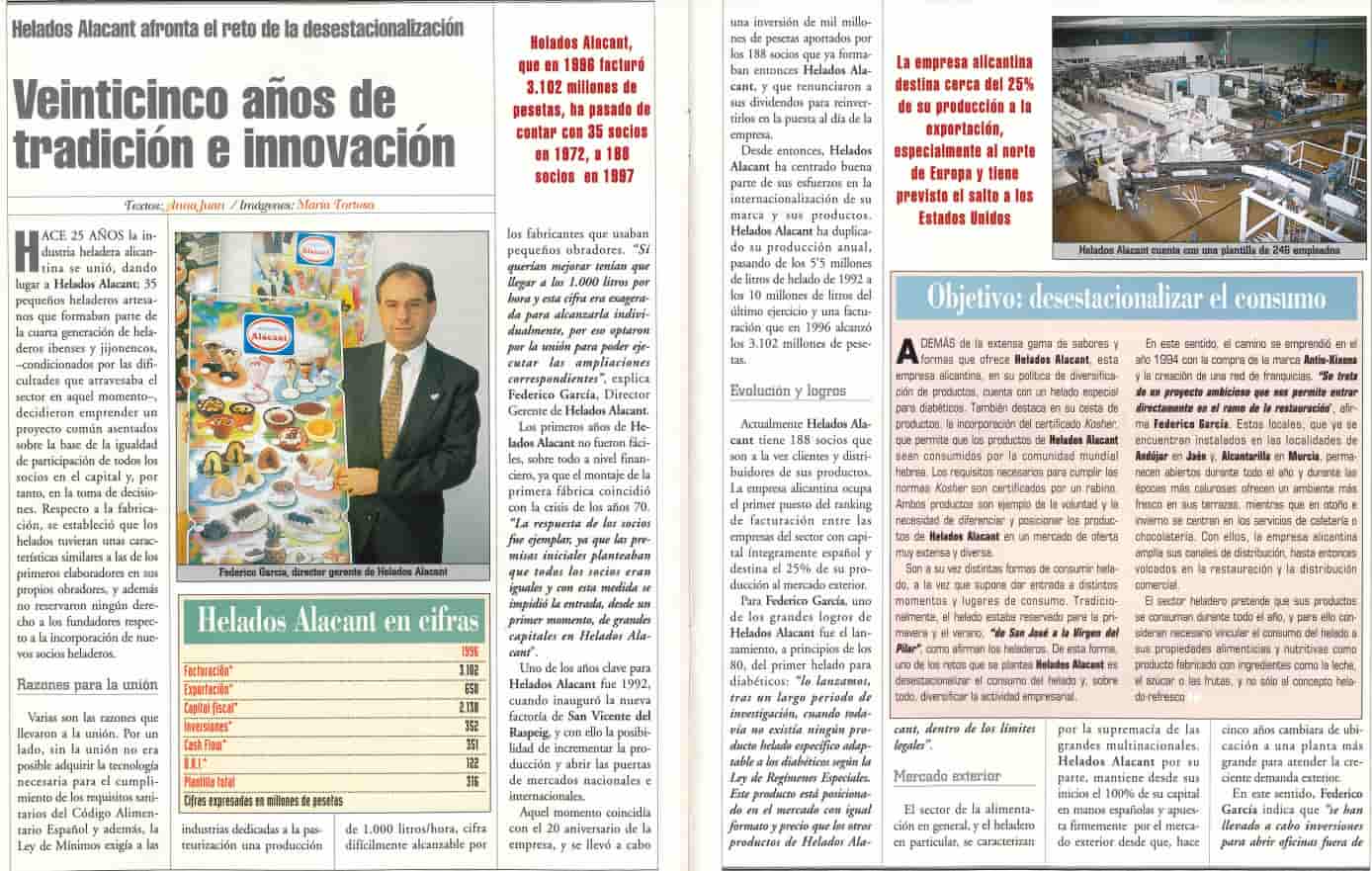 Hoy, 25 años después de aquella entrevista y medio siglo después de su fundación, Helados Alacant es un grupo con presencia internacional, más de 700 empleados y una facturación 170 millones de euros en 2022.