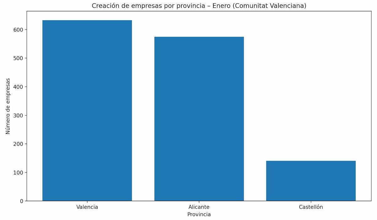 La Comunitat Valenciana mantiene un comportamiento estable en el inicio de 2026 y se sitúa entre las regiones con mayor actividad emprendedora del país. Durante el mes de enero, las provincias de Valencia y Alicante vuelven a concentrar la mayor parte de las constituciones, mientras que Castellón registra un volumen más moderado pero en línea con su dimensión empresarial.