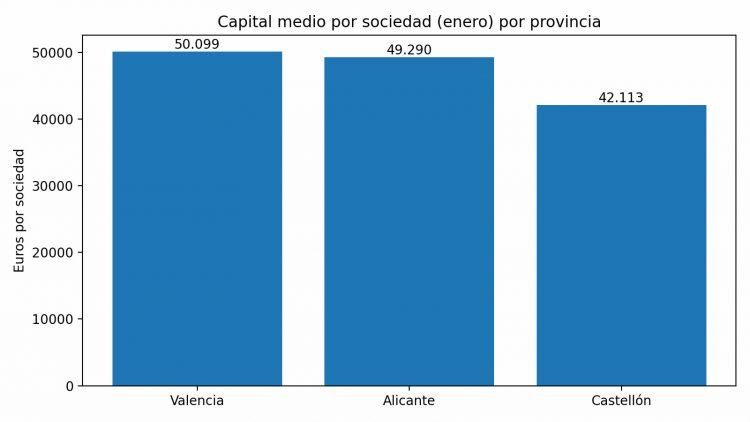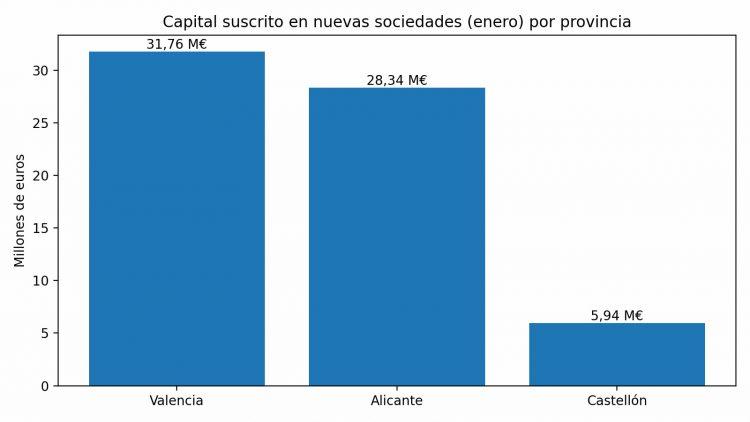 La distribución del capital confirma la concentración en las dos grandes provincias. Valencia y Alicante suman conjuntamente más del 91 % del capital suscrito en enero, dejando a Castellón con una participación más limitada tanto en número como en volumen económico.