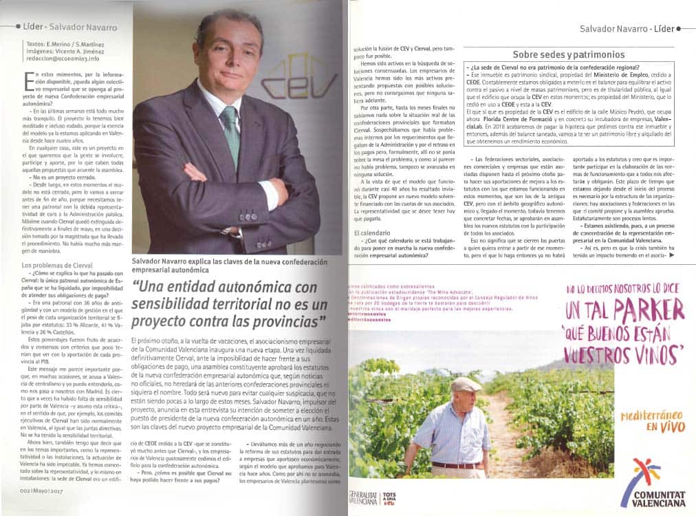 En mayo de 2017, Economía 3 entrevistó a Salvador Navarro, entonces presidente de la patronal valenciana, en un momento en el que la organización acababa de reconstituirse tras la liquidación de Cierval, que había ejercido como patronal autonómica histórica.