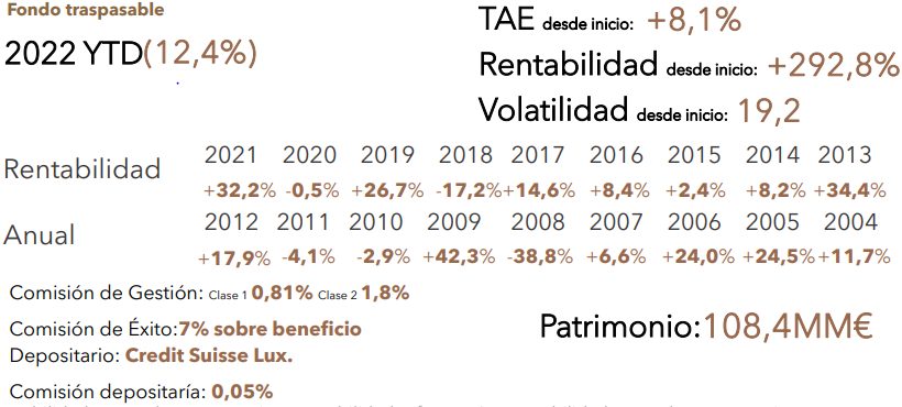 La firma cuenta con tres fondos luxemburgueses, en los que a su vez invierten los productos españoles; además de contar con un plan de pensiones. En conjunto gestiona más de 300 millones de euros.