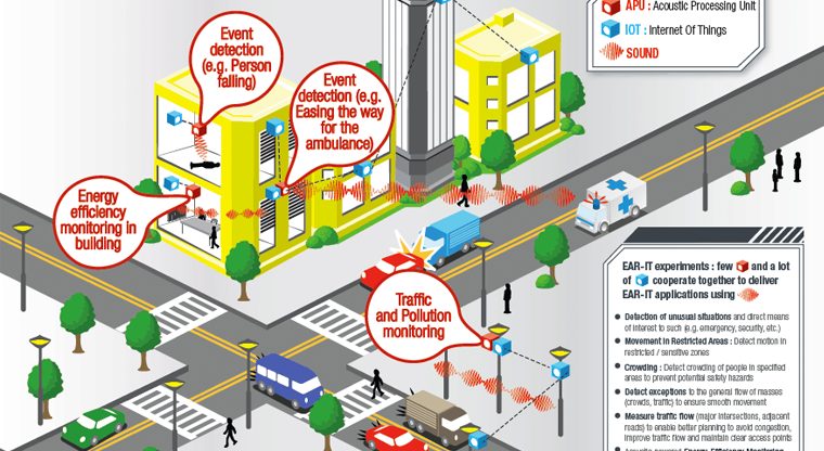 Uno de estos proyectos que está aprovechando el despliegue de esta red de sensores en la ciudad de Santander es el EAR IT que, mediante la monitorización del audio, tiene como objetivo la utilidad de los sensores acústicos aplicado a diferentes servicios: